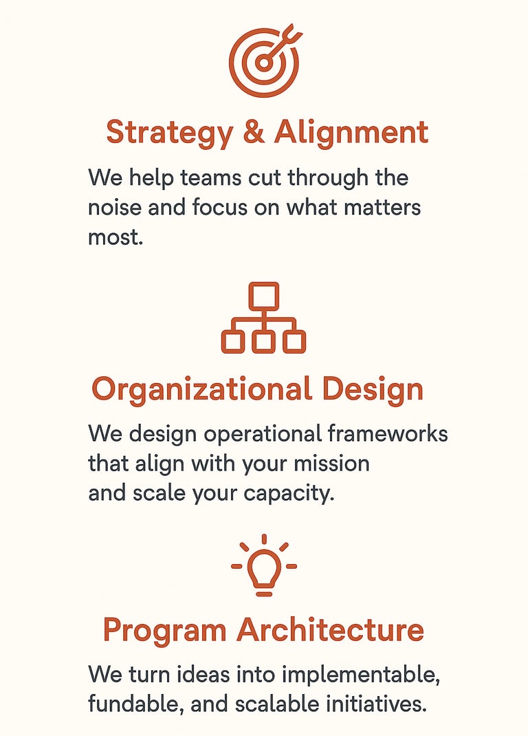 We don’t just hand you a plan — we build clarity, capacity, and alignment that last long after the engagement ends.